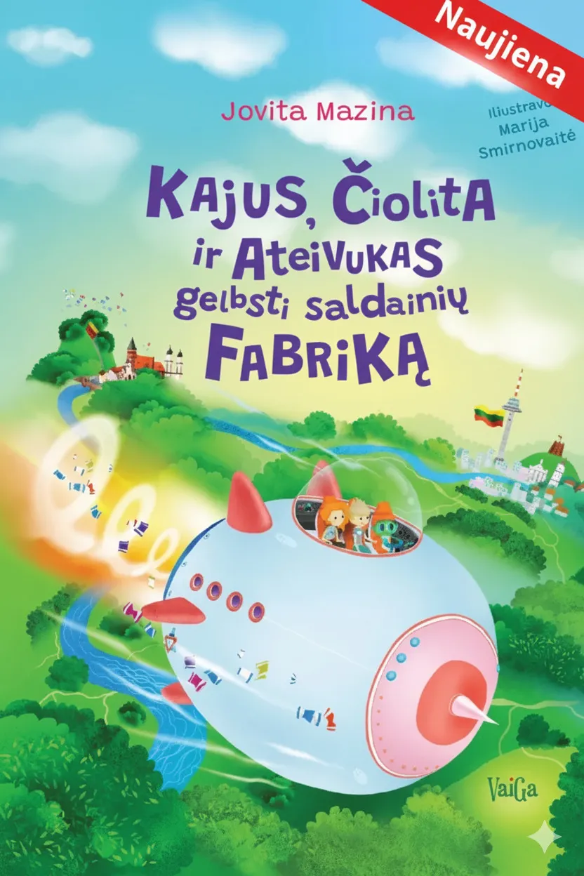 Tai ketvirtoji Jovitos Mazinos knygelė vaikams. Ji pasakoja nuotaikingą ir drauge paslaptingą istoriją apie dviejų geriausių draugų Kajaus bei Čiolitos ir jų bičiulio Ateivuko pastangas išgelbėti Lietuvą nuo netikėtos nelaimės. Vieną rytą prabudę žmonės nebemoka džiaugtis ir šypsotis, jie tik pyksta ir barasi, o aplink juos sklando paslaptingi nelaimės jausmą nešantys saldainiai. Kas ir kodėl sukūrė šiuos saldainius? Kur jie gaminami? Kaip sustabdyti visą šalį apimančią nelaimės epidemiją? Draugai nutaria keliauti per Lietuvą ir ieškotišių keistų įvykių priežasties. Kaunas, Vilnius, Alytus, Klaipėda, Šiauliai: kuriame iš šių miestų bičiuliai atrasnelaimės šaltinį, ir ar pavyks jiems į šalį sugrąžinti laimę?