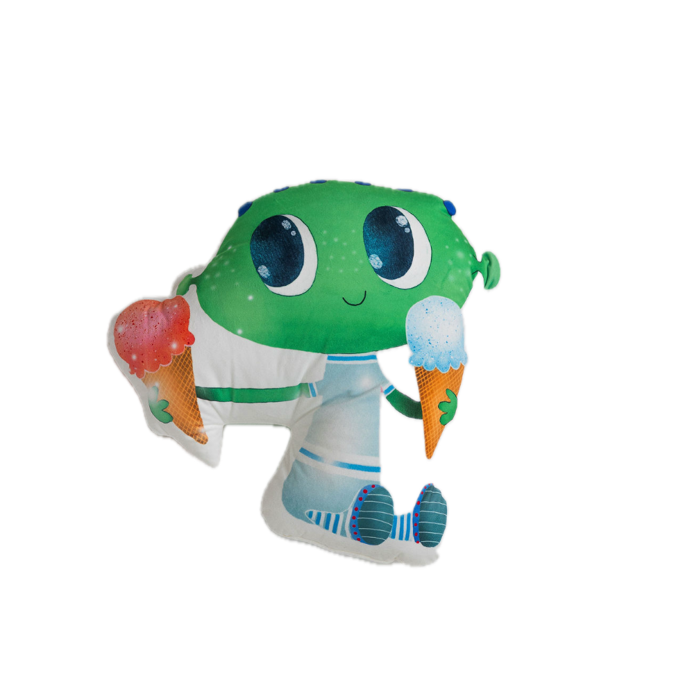 Minkštas ir jaukus pliušinis žaislas–pagalvėlė „Ateivukas“ – puikus draugas vaikams bei žaisminga interjero detalė. Dėl savo funkcionalumo gali būti naudojamas tiek žaidimams, tiek kaip patogi pagalvėlė poilsiui ar kelionėms.