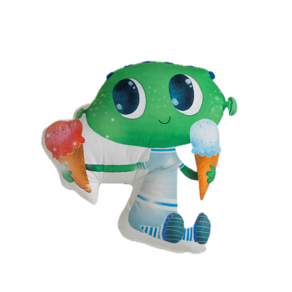 Minkštas ir jaukus pliušinis žaislas–pagalvėlė „Ateivukas“ – puikus draugas vaikams bei žaisminga interjero detalė. Dėl savo funkcionalumo gali būti naudojamas tiek žaidimams, tiek kaip patogi pagalvėlė poilsiui ar kelionėms.